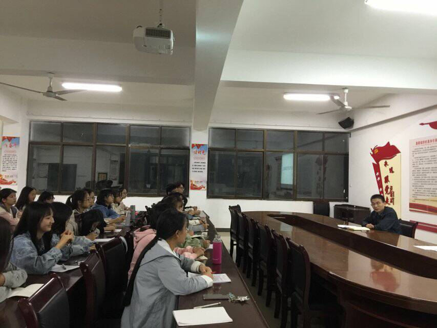 11月8日,学工处处长王建发在黄金校区与护理学院联系班级见面。