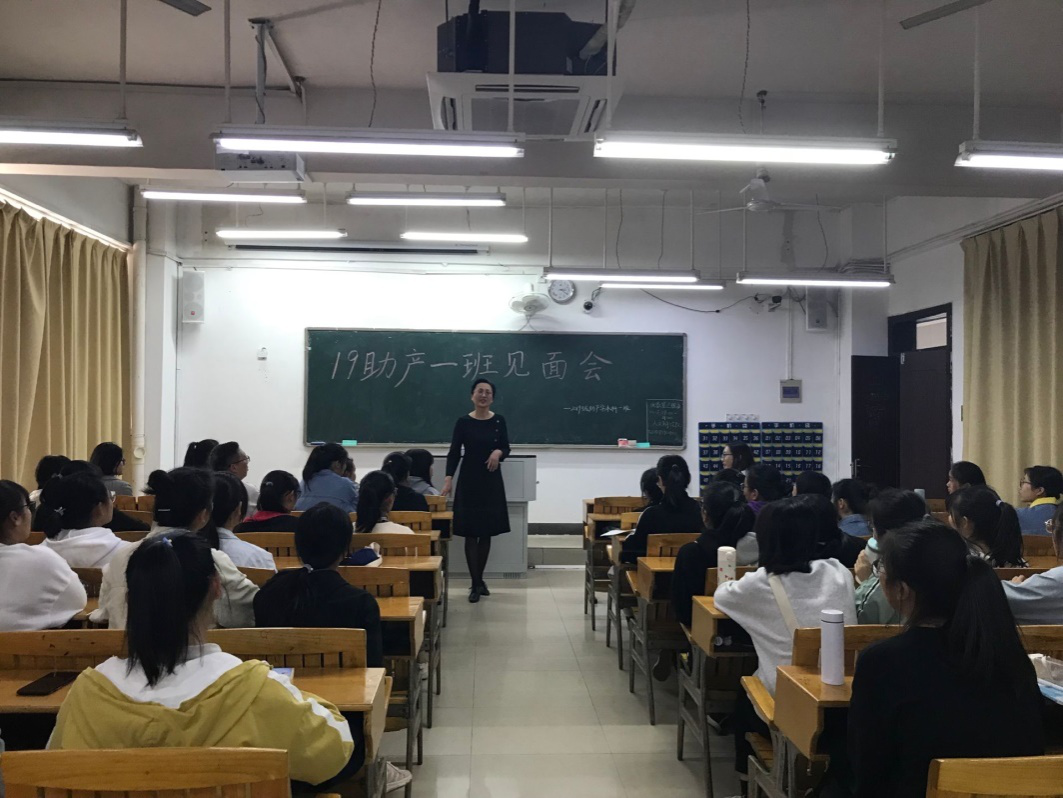 11月13号下午,学校审计处副处长朱卫卫与护理学院2019级助产一班全体同学在教学楼112教室举行见面交流会,该班全体同学和班主任参加。