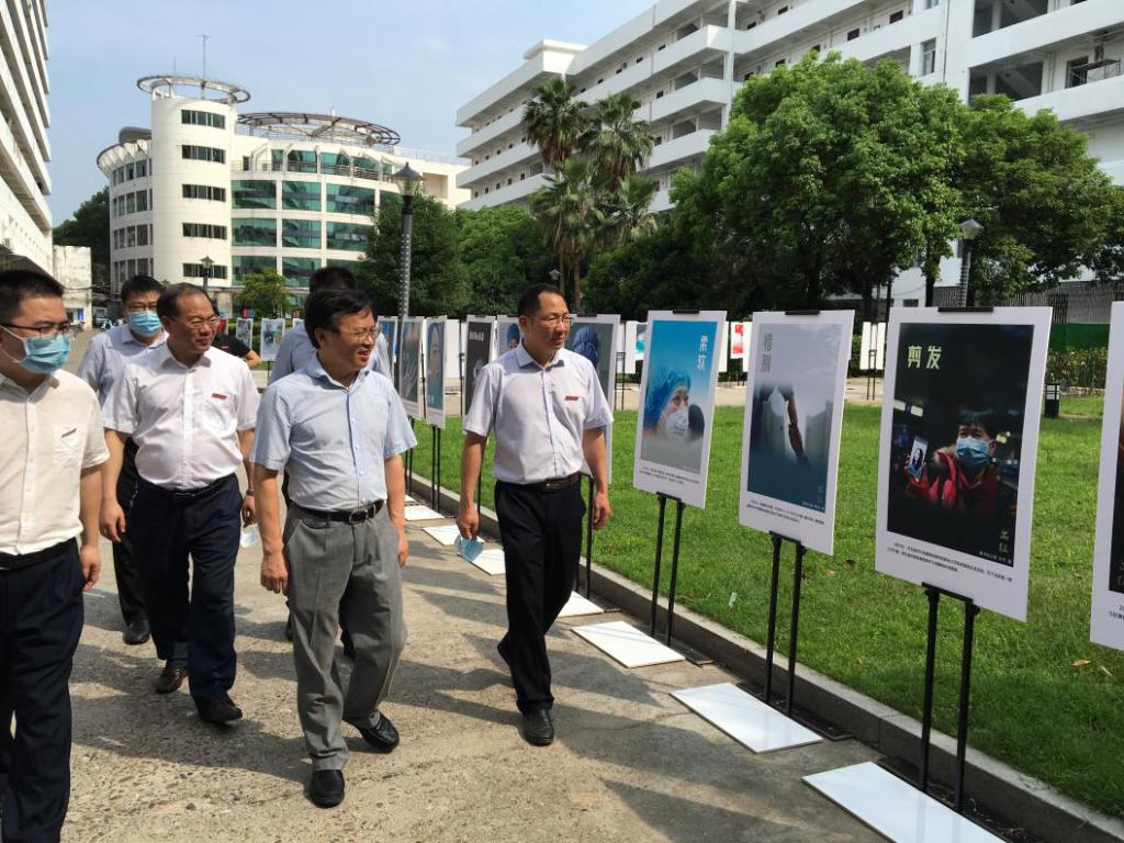 5月9日上午,护理学院迎5.12国际护士节抗疫主题图片展“聚战疫力量,传红医精神”在章贡校区举办。学校党委书记李恭进,党委委员、副校长黄瑞忠、叶军明亲临现场指导,护理学院全体教师以及部分返校的学生到现场观展。