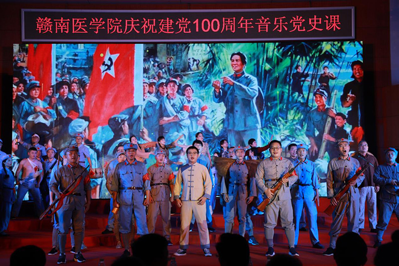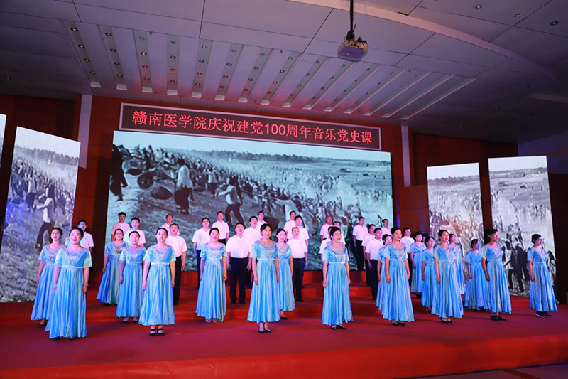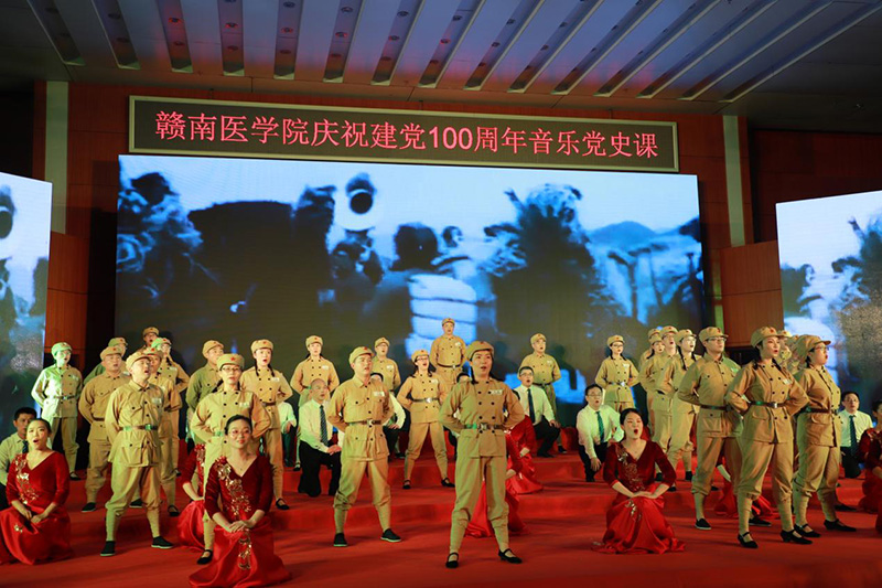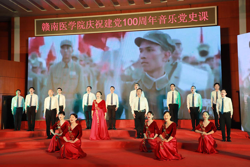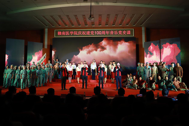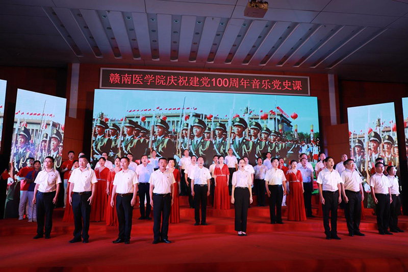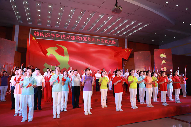 作为党史学习教育的重要内容,此次“奋斗百年路,启航新征程”——庆祝建党100周年音乐党史课,唱响了爱党爱国爱社会主义的时代主旋律,进一步激发了广大赣医师生爱党爱国的热情,增强了党的意识,弘扬了爱国主义精神,展示了蓬勃向上的新时代精神风貌。在鲜艳的党旗指引下,我校将以党史学习教育为契机,继续凝聚团结奋进的强大精神力量,更加紧密地团结在以习近平同志为核心的党中央周围,不忘初心、牢记使命,朝着“两个一百年”奋斗目标、中华民族伟大复兴的中国梦扬帆启航、阔步前进!