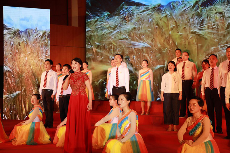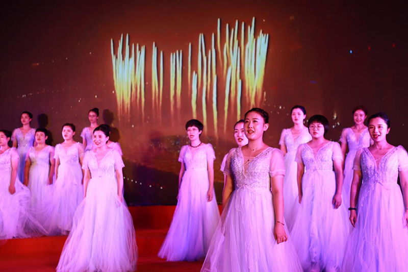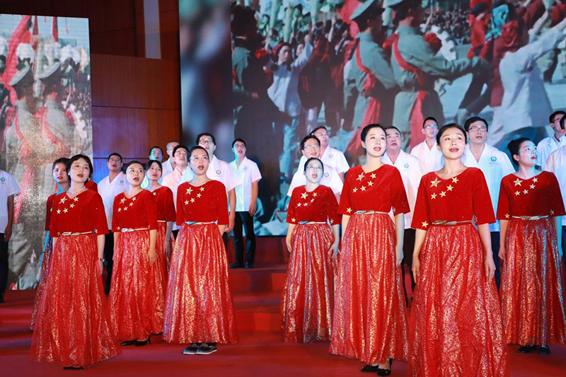 大学生合唱团和机关党委的处级干部们纵情高唱《不忘初心》《走向复兴》,唱出了中华民族伟大复兴的巨轮乘风破浪、胜利驶向光辉的彼岸的美好愿景。