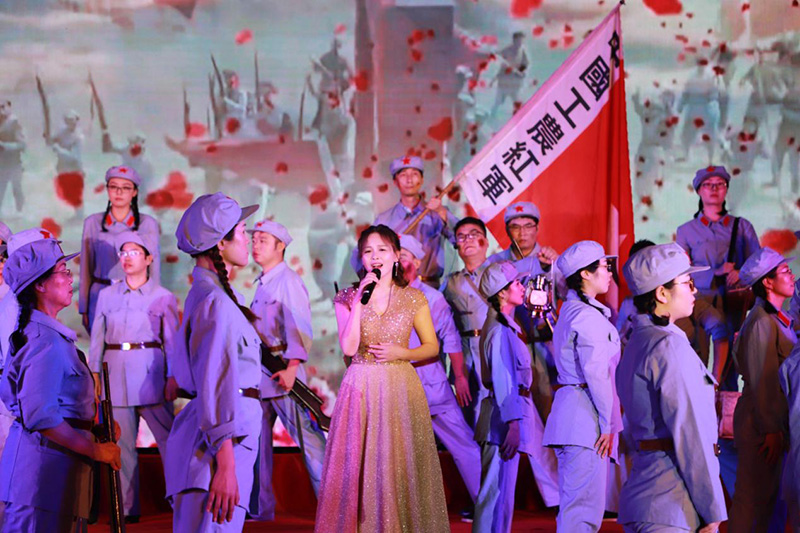 接下来,由康复学院、护理学院、人文社会科学学院带来的大合唱和女声独唱《毛委员和我们在一起》《映山红》《过雪山草地》,演绎了以毛泽东同志为主要代表的共产党人,建立井冈山革命根据地和以赣南为主要区域的中央革命根据地,开始了农村包围城市、武装夺取政权的革命道路开创性探索和红军战士两万五千里长征的英雄壮举。