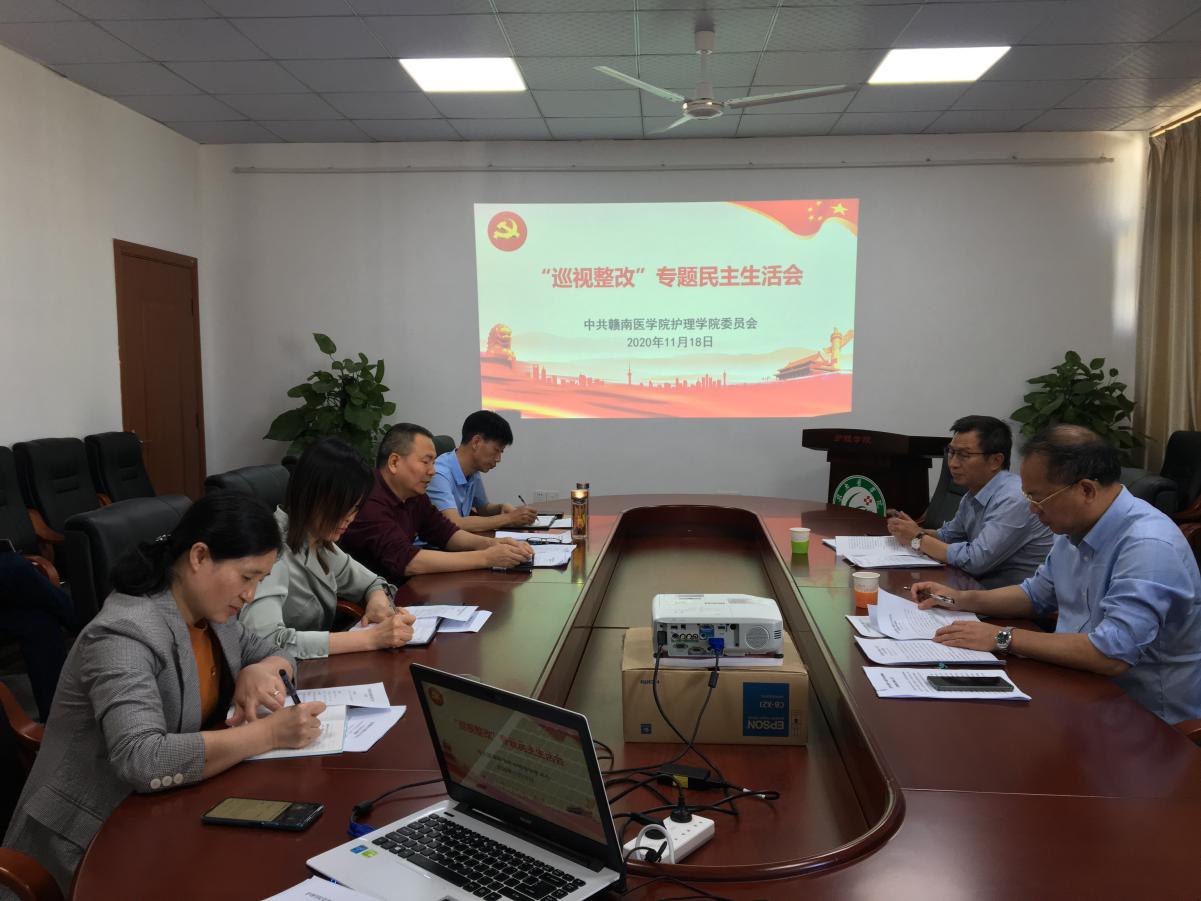 11月18日下午,护理学院在章贡校区召开巡视整改专题民主生活会。学校党委委员、副校长叶军明,教师工作部部长、教务处处长严宜明到会指导。护理学院党委全体领导班子成员出席会议,各党支部书记列席参加。