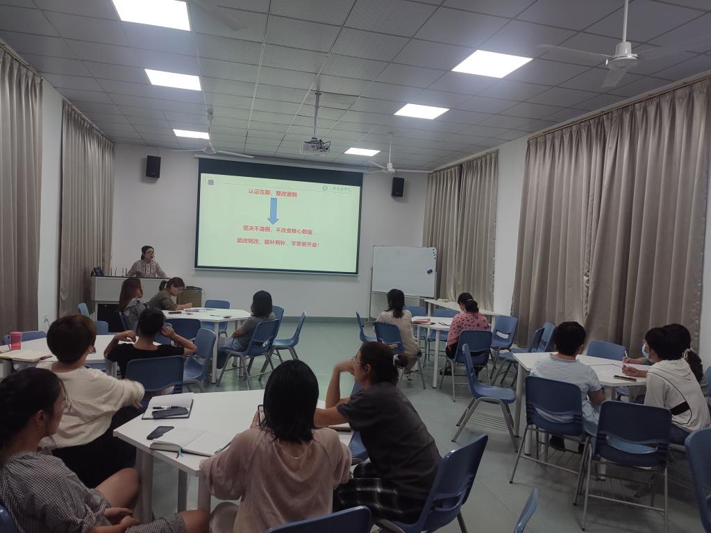 首先,兰艳莉对毛磊焱的到来表示热烈欢迎,并要求所有参会人员认真听讲、做好笔记,对照授课内容逐项查找自身存在的问题,会后对教研室的试卷档案材料进行自查、认真整改。