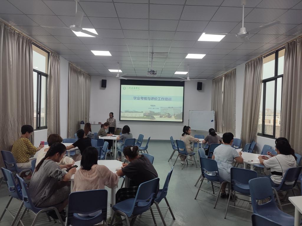 为迎接护理学专业认证,进一步规范学院学业考核与评价工作,护理学院于10月8日下午在章贡校区护理楼701室召开了学业考核与评价工作培训会。学院邀请了学校教务处教学质量评估中心教学质量管理科科长毛磊焱前来授课,学院党委委员、副院长兰艳莉、全体专职教师、教学科研管理办公室全体人员参会。会议由学院教学科研管理办公室主任姚宏亮主持。