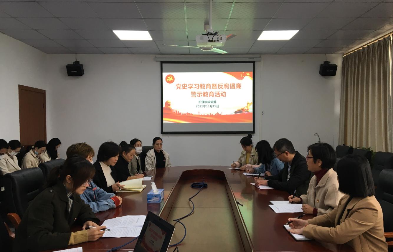 11月19日上午,护理学院开展党史学习教育暨反腐倡廉警示教育活动。