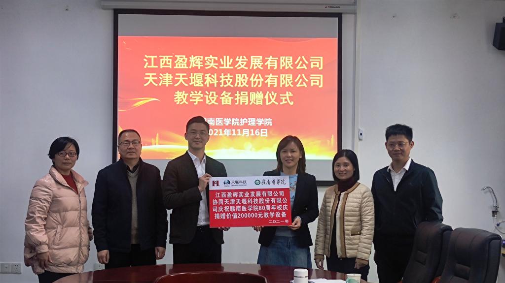 此次捐赠,江西盈辉实业发展有限公司协同天津天堰科技股份有限公司向护理学院共捐赠了价值20万元的教学设备,助力该院老年与康复实训室和老年模拟病房的建设。该院表示,将会充分利用好捐赠的教学设备,不断提升教育教学水平,培养高素质应用型护理人才。同时,希望进一步加强双方交流,深化校企合作,实现共同发展