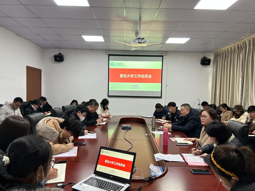 2月13日下午,护理学院召开学校更名大学工作动员会,该院全体教职工参会,会议由该院党委副书记黄明主持。