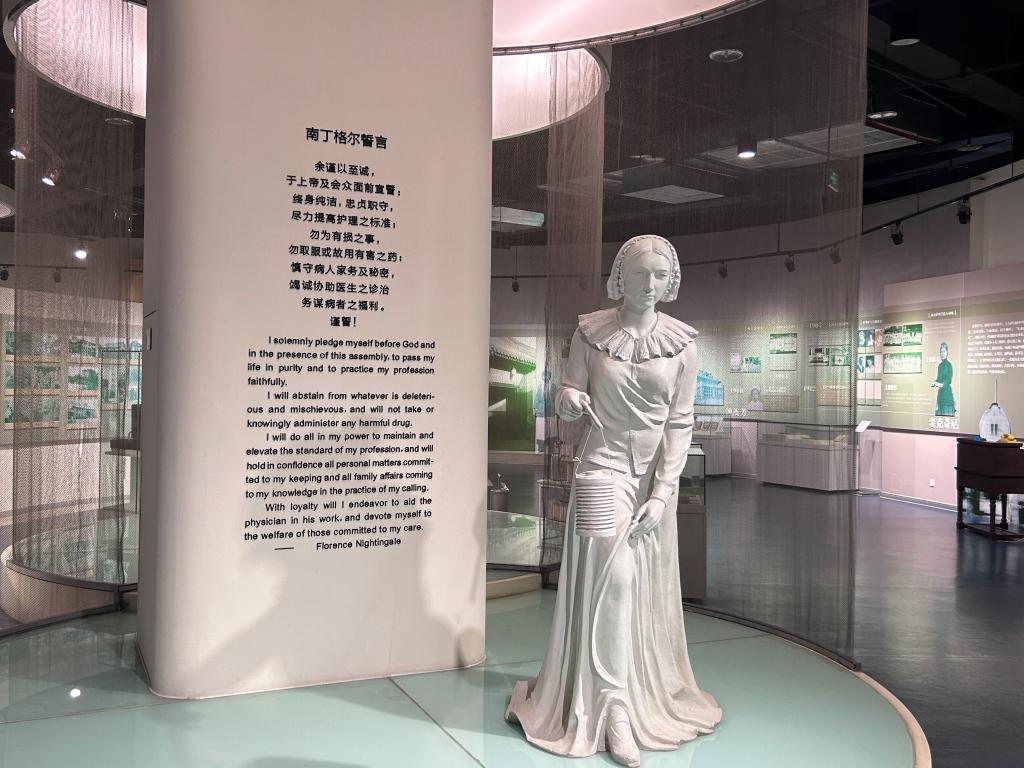 实践第一站是参观由驼人集团筹建的中国医学博物馆,中国医学博物馆内设有“医学历史馆”、“中国护理史馆”、“血液净化史馆”、“企业文化馆”等展厅,在讲解员的讲解下,实践队师生了解了驼人集团董事长王国胜先生的创业历程,感受到了王国胜先生伟大的爱国情怀,同时也深刻领悟到了创新意识的重要性和企业家精神。对实践队成员来说,印象最为深刻的是“中国护理史馆”,展厅全面展示了护理学专业从无到有、从弱到强,从完全依附于临床医学到成为独立的一级学科的历程。回眸护理学走过的漫漫之路,以穿越历史的眼光审视护理学的昨天、今天和明天,使人不禁感叹:护理学的演进,竟然有如此这般的魅力!