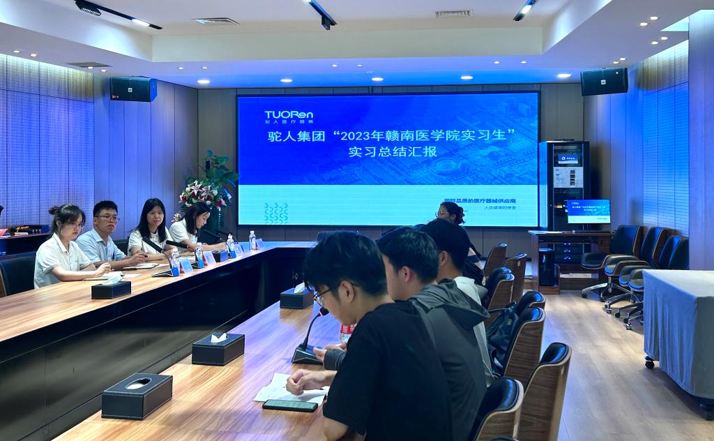 结业仪式的最后,驼人集团领导赵青作总结讲话,他肯定了实践队在实践过程中的表现,希望赣医护理学院的师生能经常到集团参观交流,通过校企更为紧密的联系促进相互发展、互利共赢。