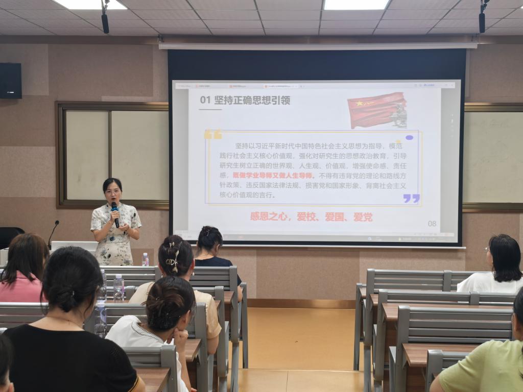 会议的最后,为帮助导师们更好地适应教学环境,提升研究生教学质量和管理水平,该院副院长林栋美对2024年在岗硕士生导师们进行了培训,详细讲解了研究生教学与管理规范,以及学院对硕士生导师们的期望和要求。