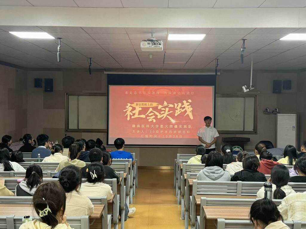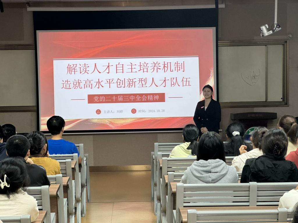 10月28日晚,护理学院“双学”讲堂第八期在章贡校区护理楼428教室举行。本次活动由4名主讲人分别围绕党的二十届三中全会精神及暑期社会实践经历进行分享,该院学生党员、入党积极分子100余人参加活动。