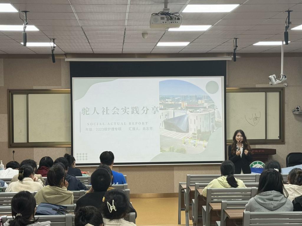 2023级护理专硕班肖志芳同学以“河南驼人、创新实践”为主题,分享了暑期在河南驼人医疗器械集团有限公司的学习实践经历。本次暑期实践让她收获满满,她感叹道“作为一名护生,要学会将理论与实践相结合,借助跨学科合作的力量,拓展职业发展的新视野,努力成为一名有创新意识的护理人才。”