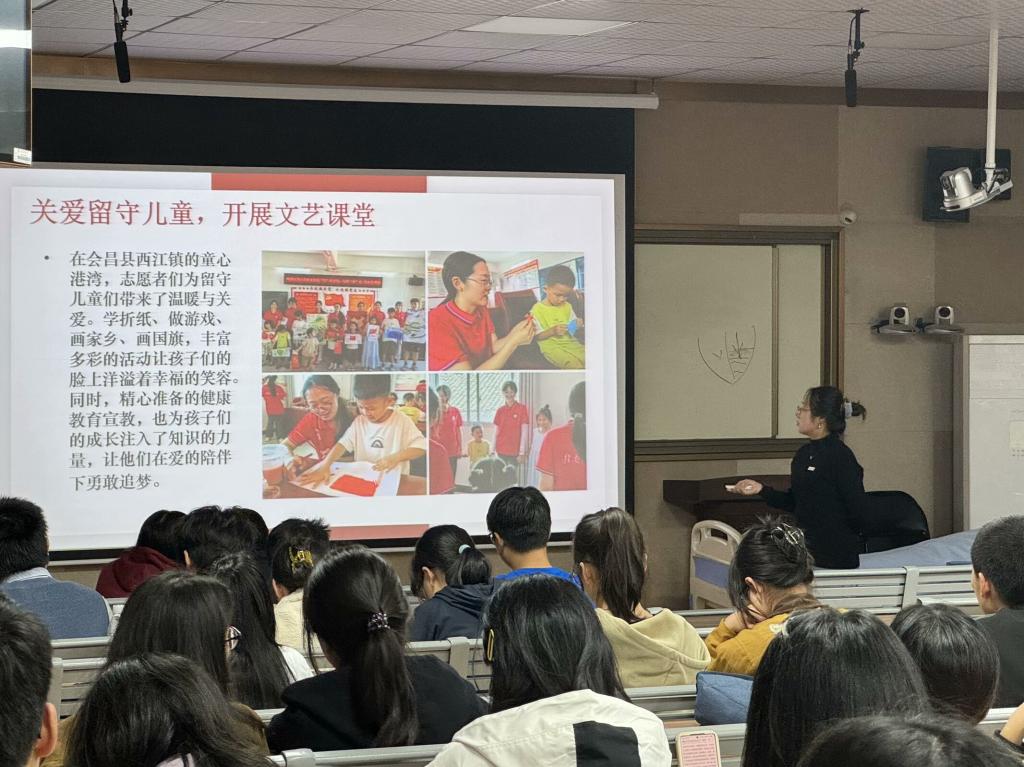 2023级护理学本科2班的符芯妍同学以“星火燃夏,医路‘护’航”为主题,向观众们娓娓道来在会昌县西江镇的暑期“三下乡”实践经历。在为期一周的时间里,实践队员们走进革命旧址追寻红色记忆,深入基层进行岗位体验,实地感受乡村振兴之变化,为当地居民提供医疗援助和健康教育,为留守儿童带去温暖与关爱……在实践中增长见识,在付出中收获成长。