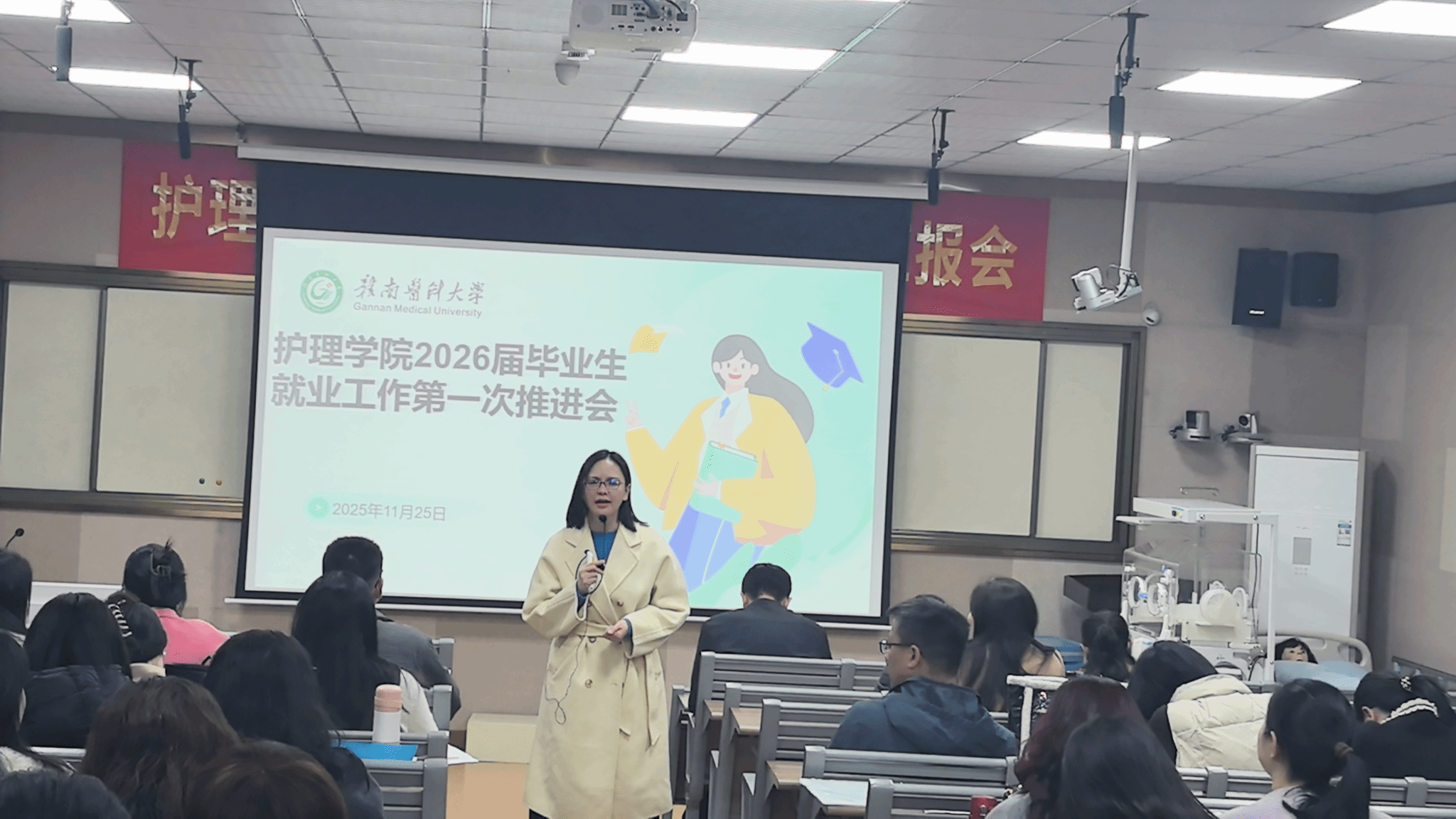 为精准应对就业新形势,扎实推进2026届毕业生就业工作,11月25日下午,护理学院在章贡校区召开2026届毕业生就业工作第一次推进会。护理学院全体教职工参加会议。