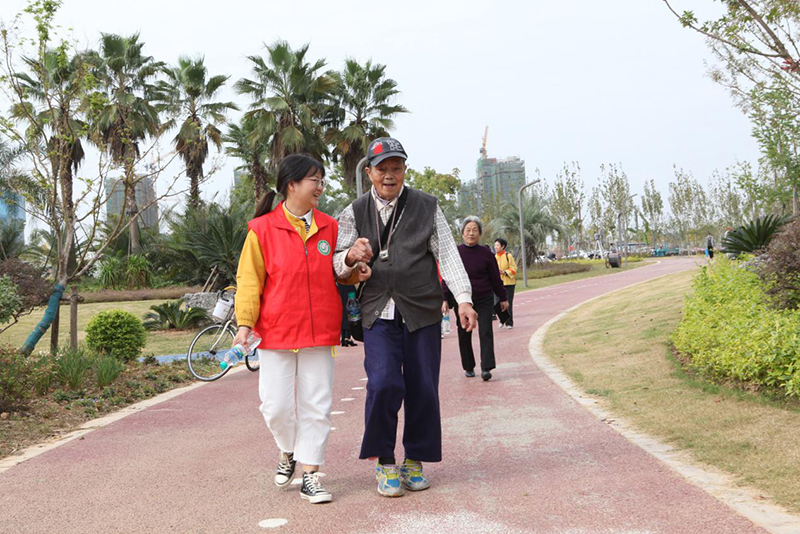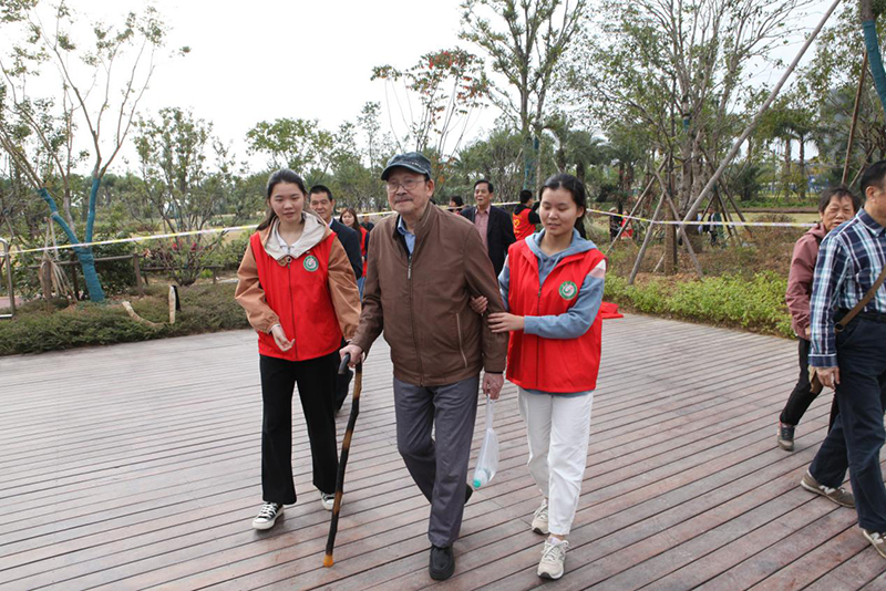 离退休人员及携老服务队员130多余人来到蓉江新区滨江公园“话重阳”“赏秋色”。