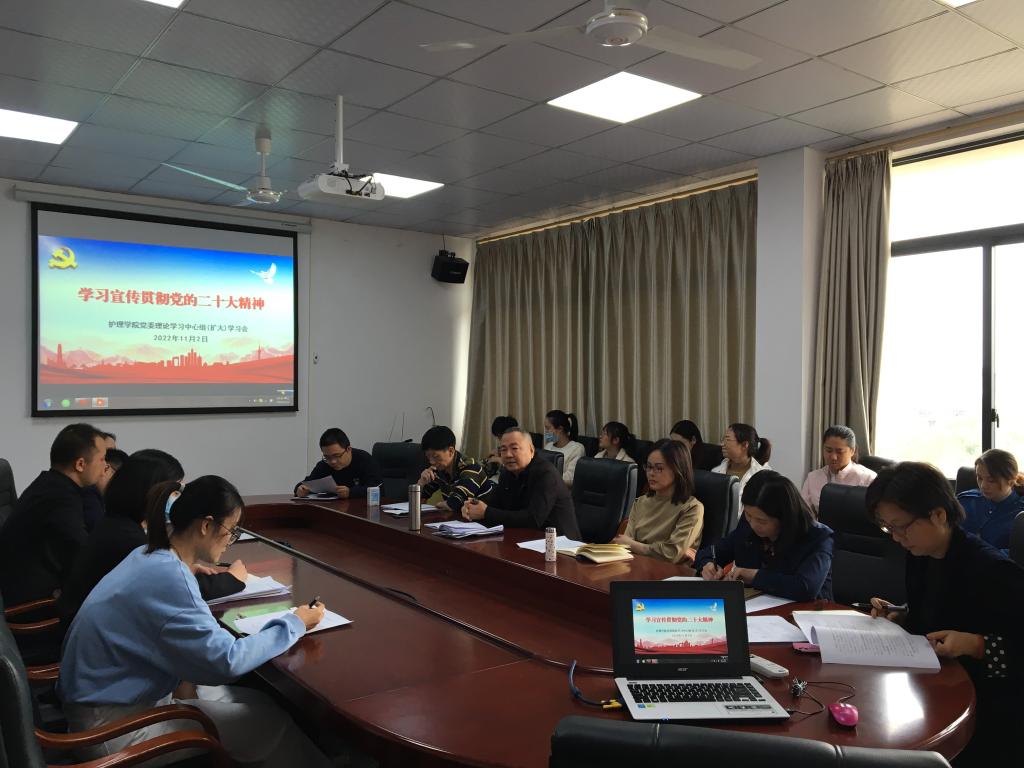 党的二十大召开后,护理学院把学习宣传贯彻党的二十大精神作为首要政治任务,迅速在全院兴起学习宣传贯彻党的二十大精神的热潮。