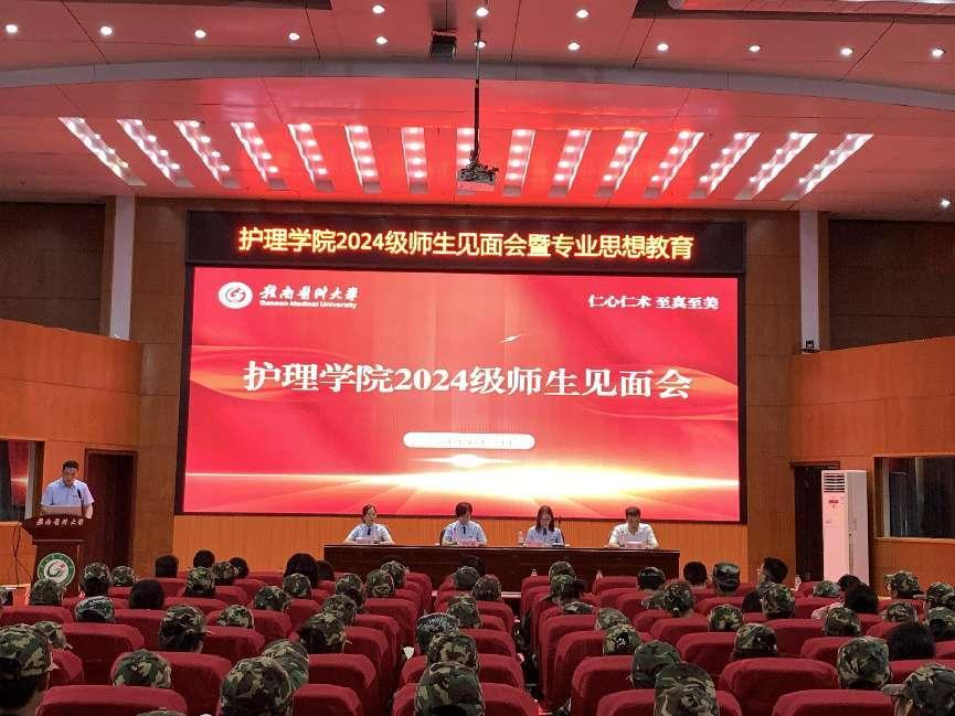 9月27日,护理学院举行2024级师生见面会。该院全体领导班子成员、各科室负责人、全体辅导员、新生班主任以及2024级全体新生参加。会议由该院团委书记曹奎主持。