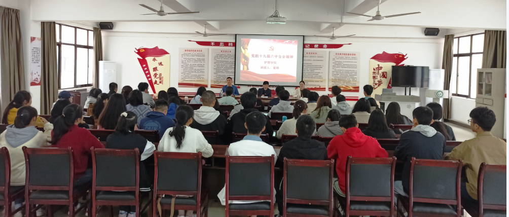11月16日中午,护理学院在黄金校区组织学工办辅导员和2021级全体学生干部学习党的十九届六中全会精神,会议由该院党委副书记黄明主持。