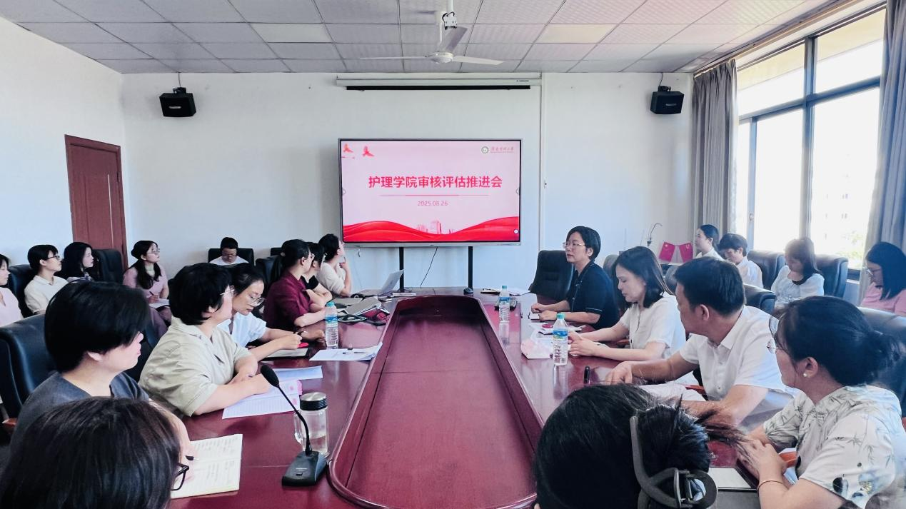 2025年8月26日下午,护理学院在学院会议室召开审核评估工作推进会。会议由孟利敏副院长主持,各部门负责人及全体教师参加。