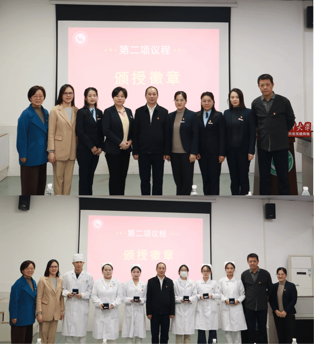 该院党委书记丁梅宣读了护理学院2025年“燕尾先锋”称号授予名单。徽章授予环节,赖传景为获评“燕尾先锋”的师生代表颁授徽章。“燕尾先锋”教师代表温艳萍、学生代表李若菡先后作表态发言。